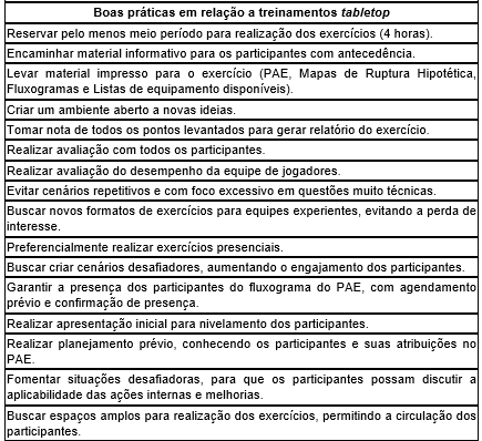 Tabela 3 – Boas práticas dos Estudos de Ruptura Hipotética